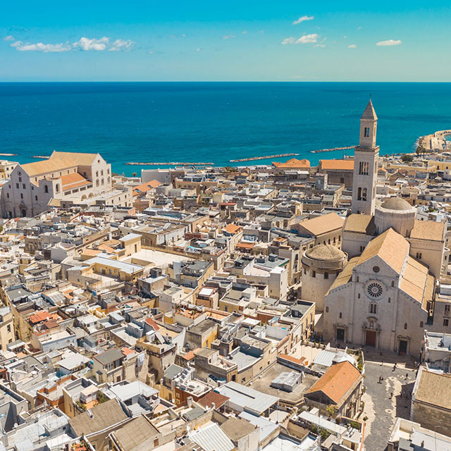 “If Paris had the sea, it would be a little Bari”, says a Bari proverb. Even if it is not Paris it is still a beautiful city in the south, full of attractions to see and delicacies to taste. The visit of the city can start from the seafront, one of the most beautiful in Italy, characterized by a row of black cast iron street lamps that over the years have become true symbols of this city. The two most important historical buildings are the Basilica of San Nicola, a pilgrimage destination for Catholic and Russian Orthodox faithful (it is in fact one of the few Italian places of worship where the functions of both rites are celebrated) and the Swabian castle- Norman, one of the most important Romanesque style monuments in Italy. Those who want to discover the true spirit of Bari cannot miss a visit to Bari Vecchia, the ancient and popular heart of the Apulian capital by day and a nightlife spot. Bari is also known for the excellence of the culinary tradition, including the Bari focaccia, the fried panzerotti, the fresh orecchiette with turnip greens, the calzone, the pan of rice, potatoes and mussels and many other delicacies to savor.