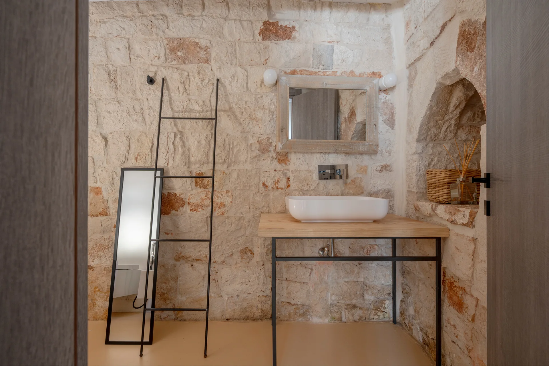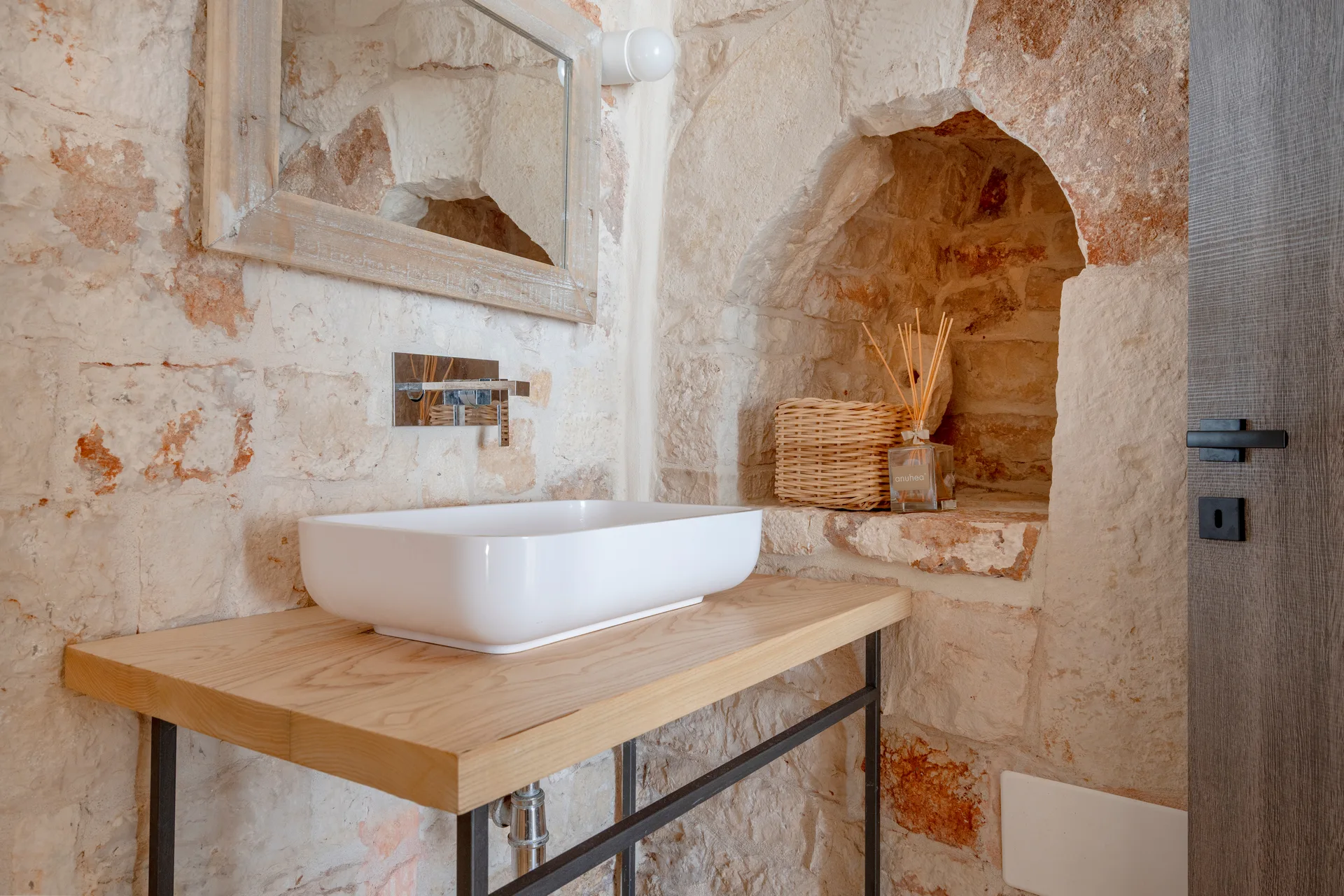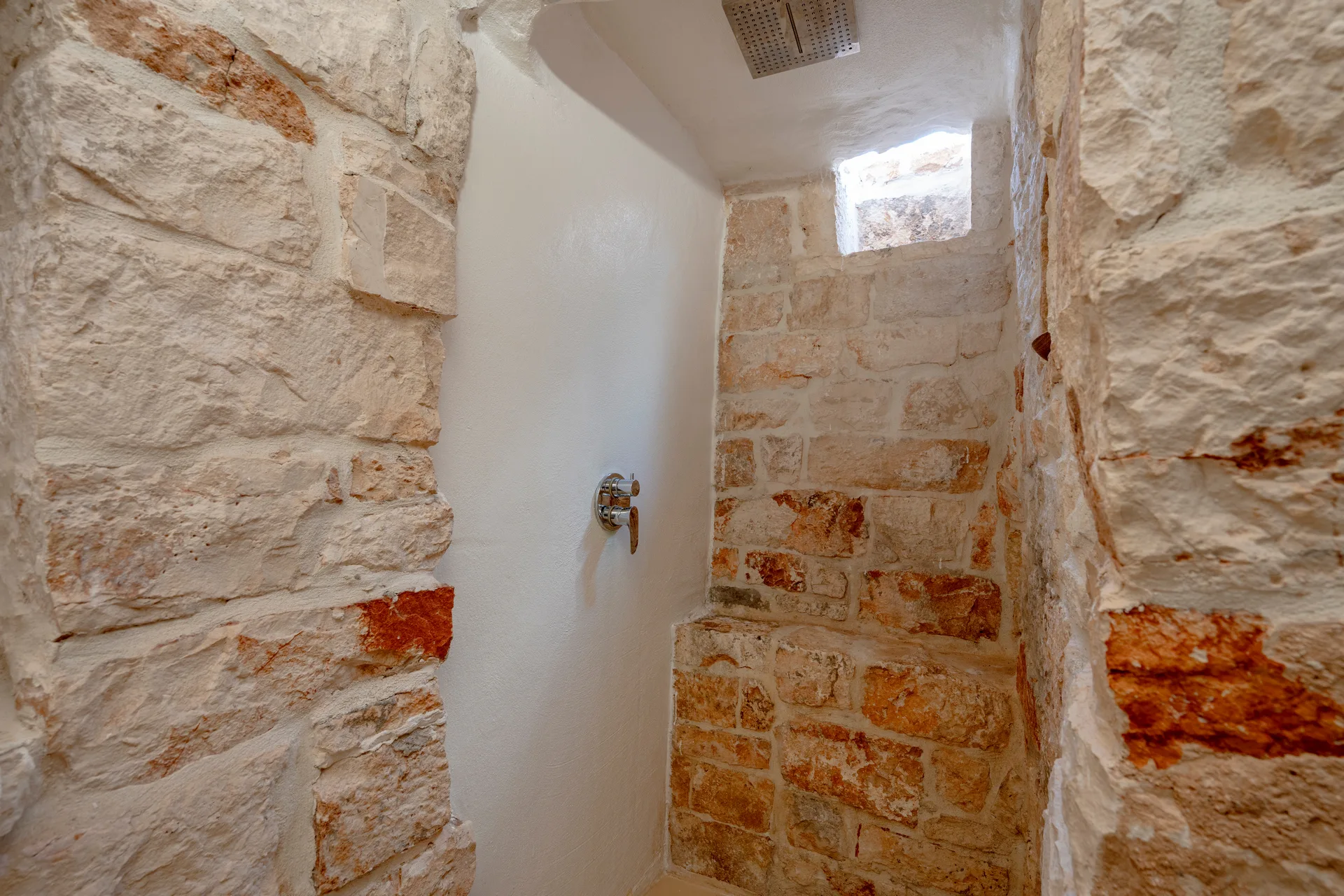 The bathroom is typical of the region, with a shower completely carved into the stone.