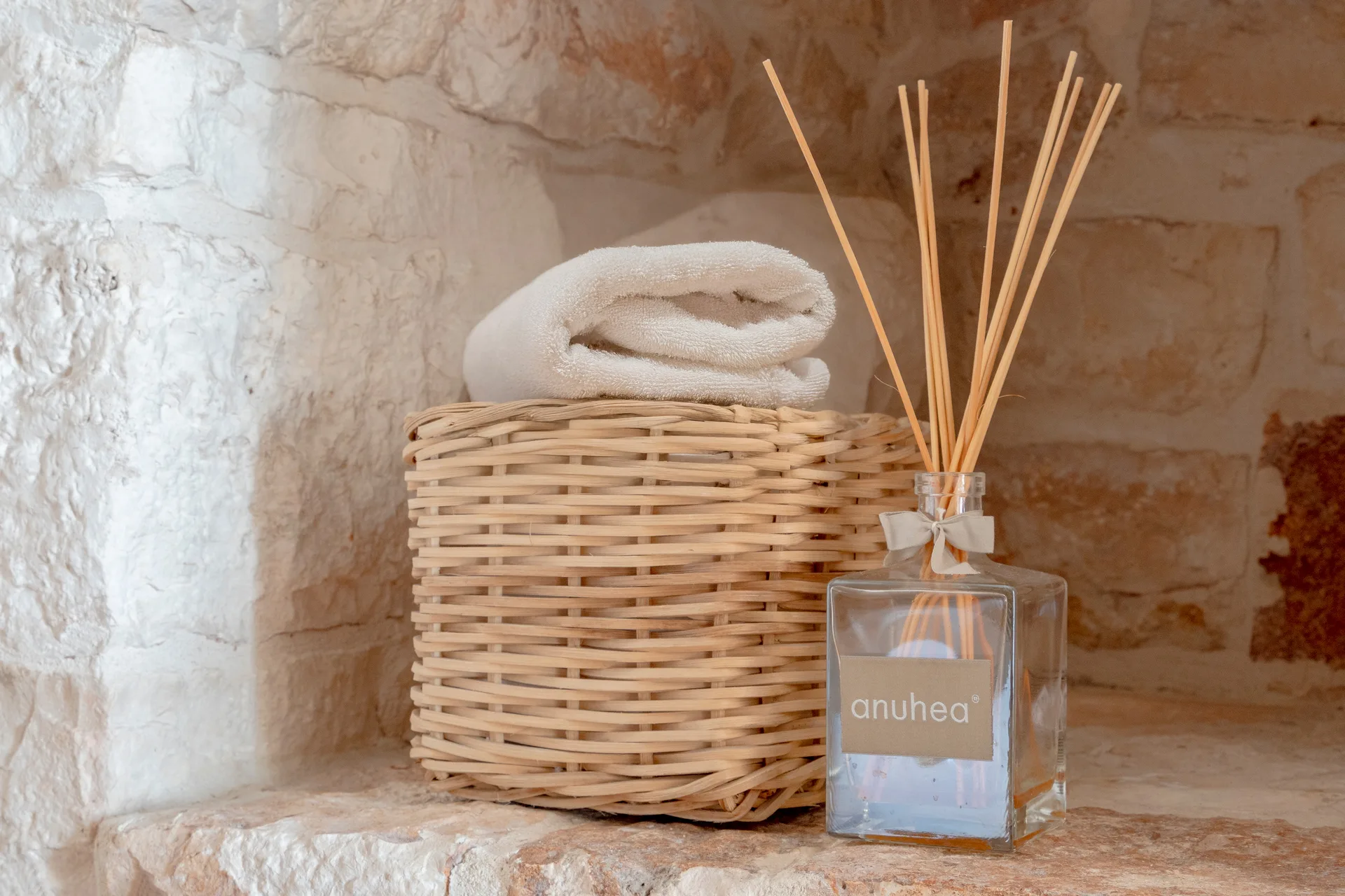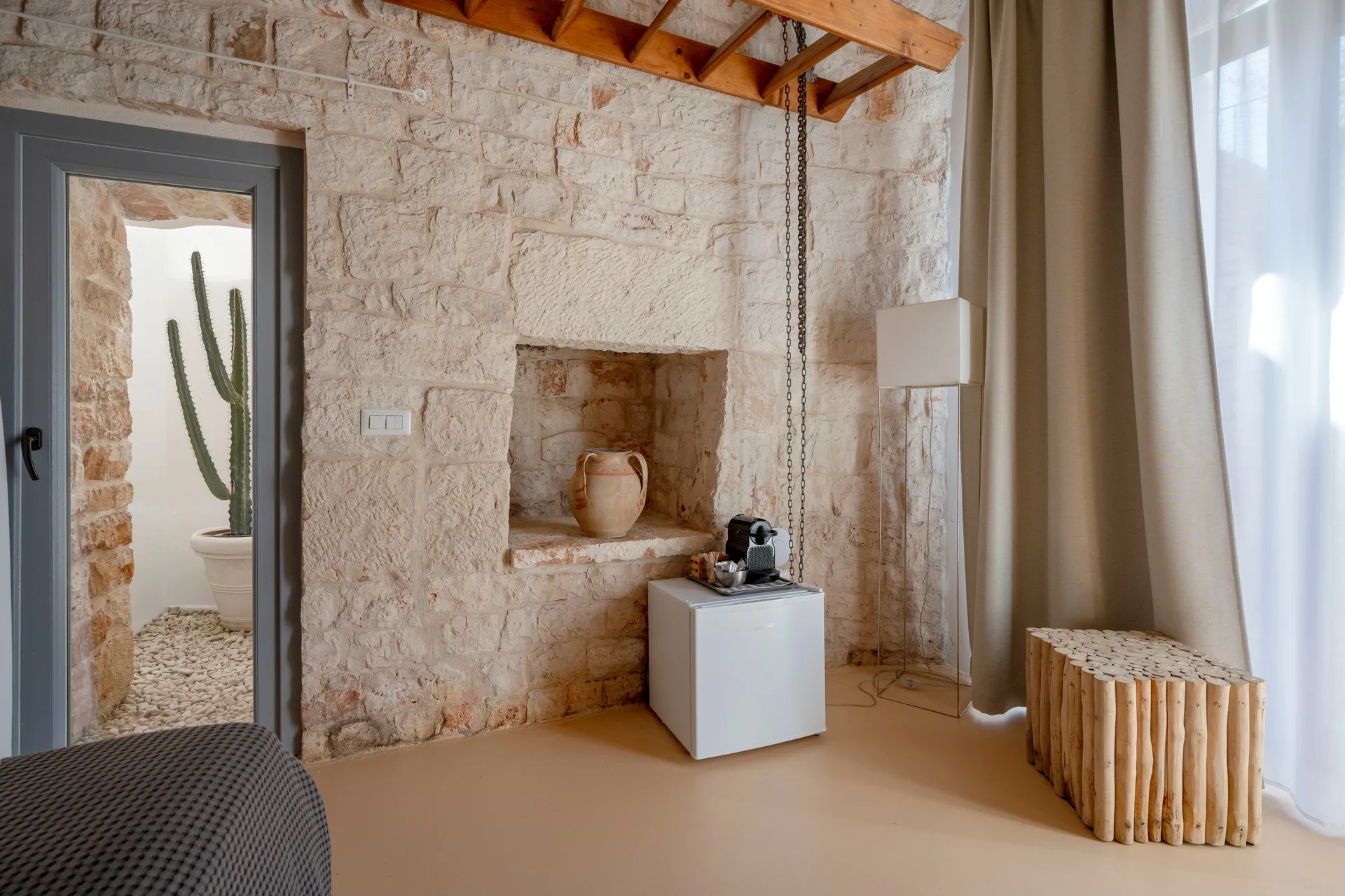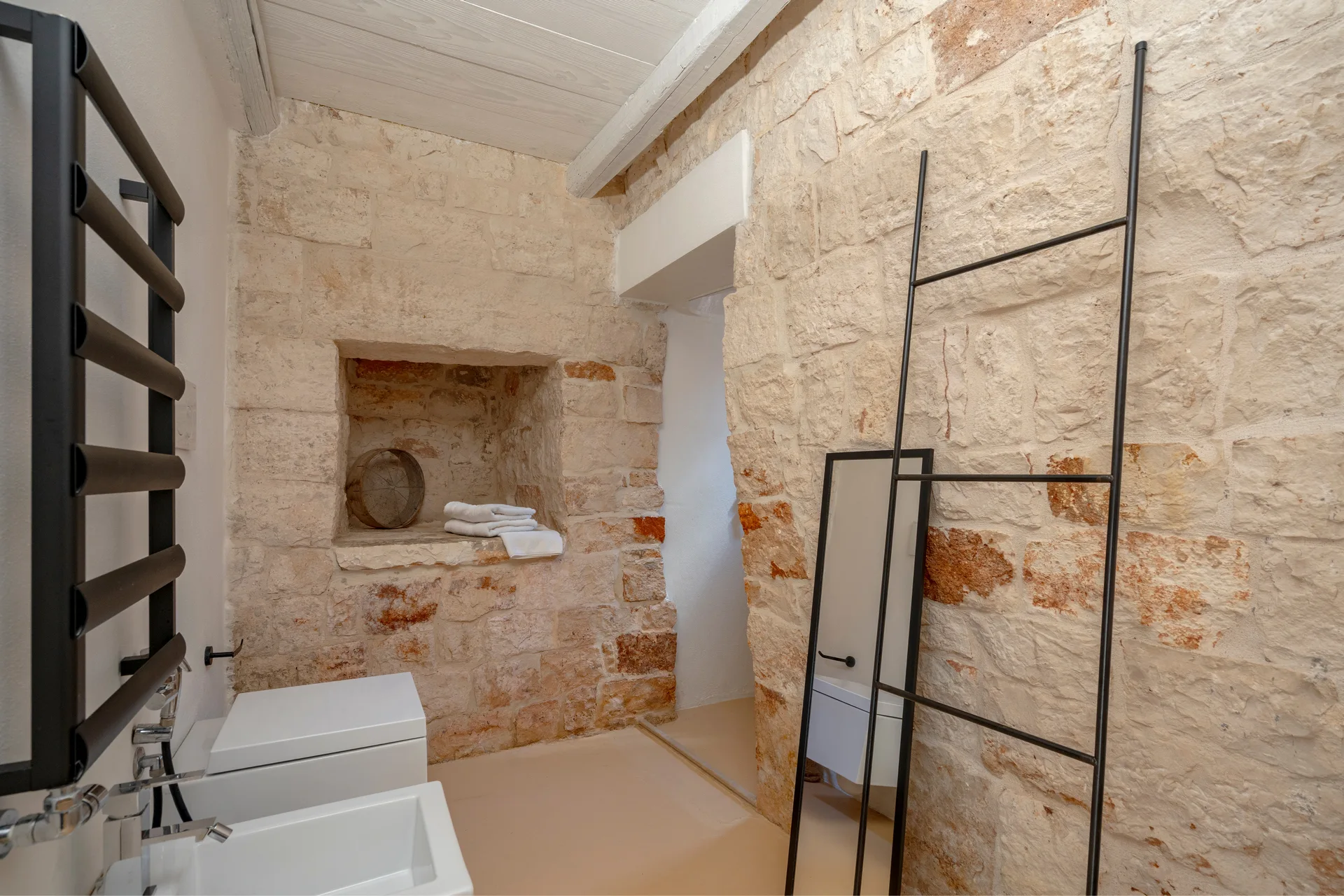 The bathroom is typical of the region, with a shower completely carved into the stone.